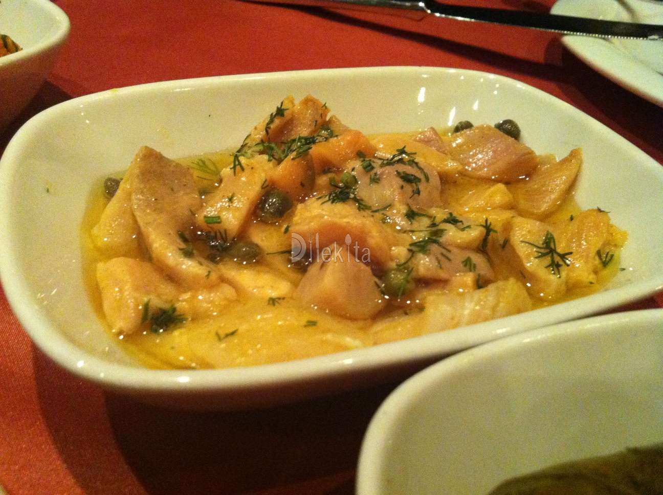 Tuz-limon karışımıyla ekşimsi bir tada sahip olan 'Levrek Marine' favorilerimden. Mezeler paylaşmak içindir ama favori mezelerim hiç bitmesin istediğimden çaktırmadan kendi önüme çekerim.