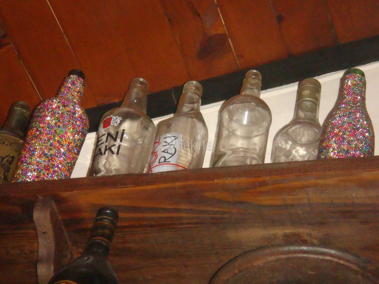 Yemeklerden fırsat bulup başınızı tavana doğru kaldırdığınızda, başınızın üstünde yer alan raflarda sıra sıra dizilmiş renkli şişeler göreceksiniz.