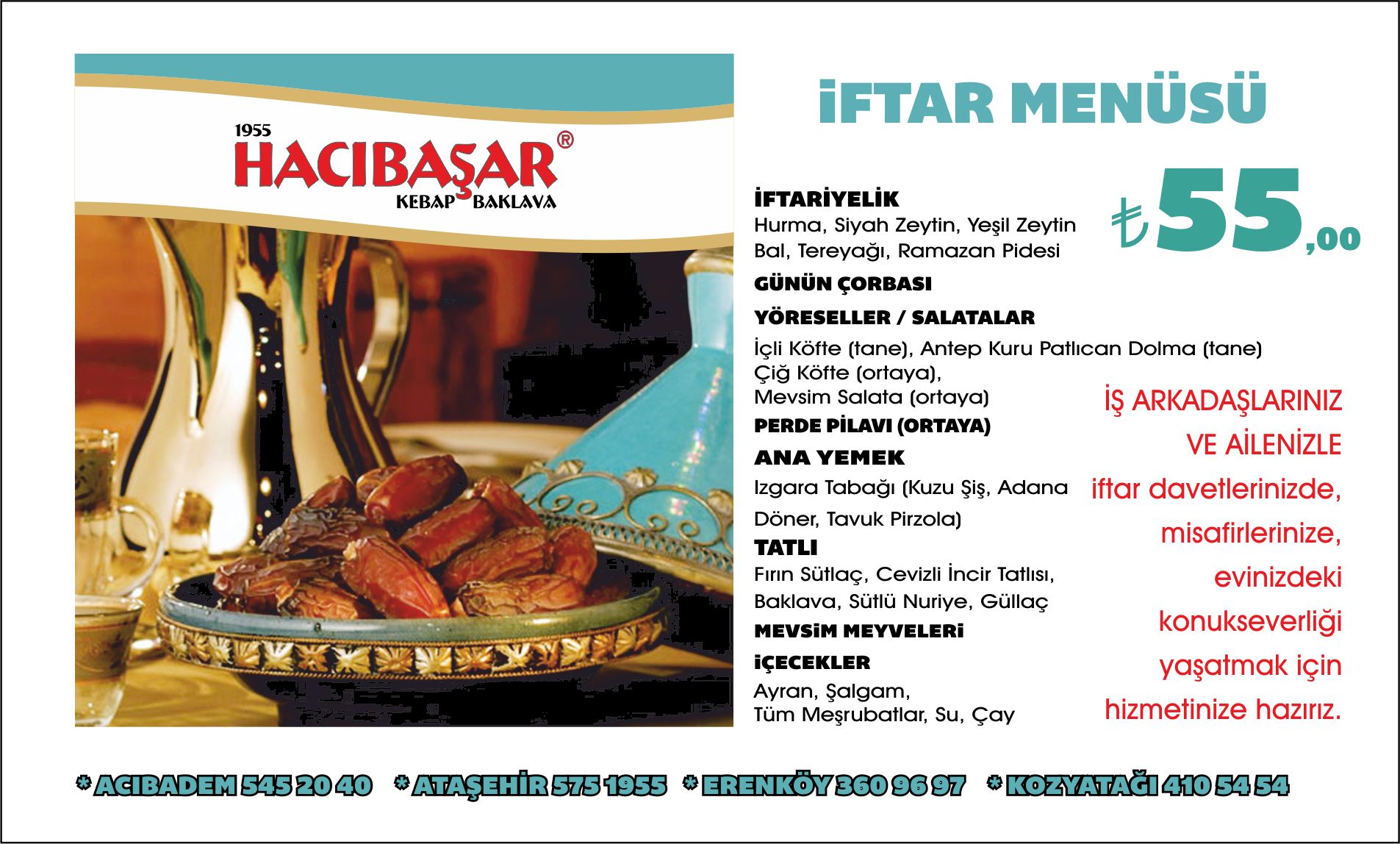 | Kişibaşı: | 55 TL (KDV Dahil) |