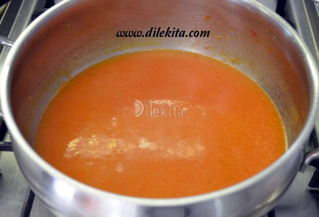 ♥ Sebzeler iyice piştikten sonra salçalı sos sebzelerin üzerine eklenir,