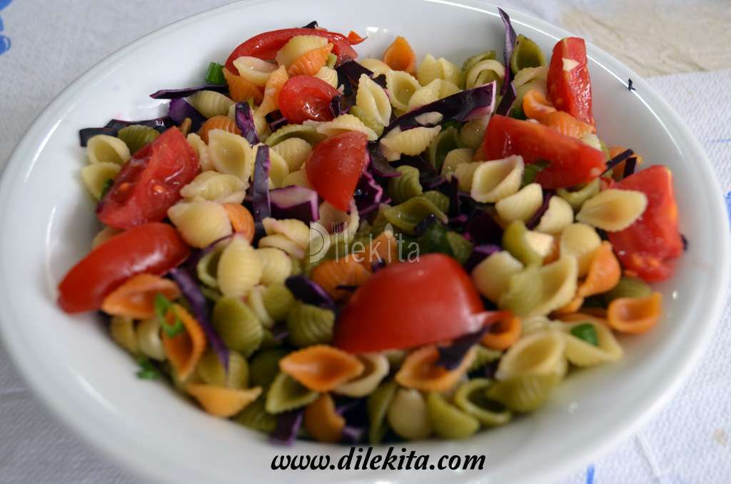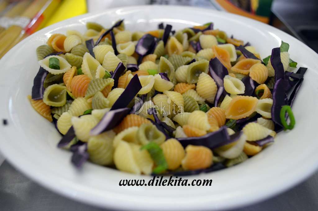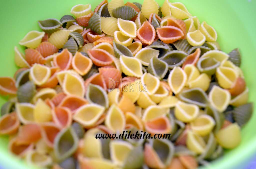 ♥ Makarna haşlanıp süzülür ve soğutulur. (Önemli not: Yıkamayın)