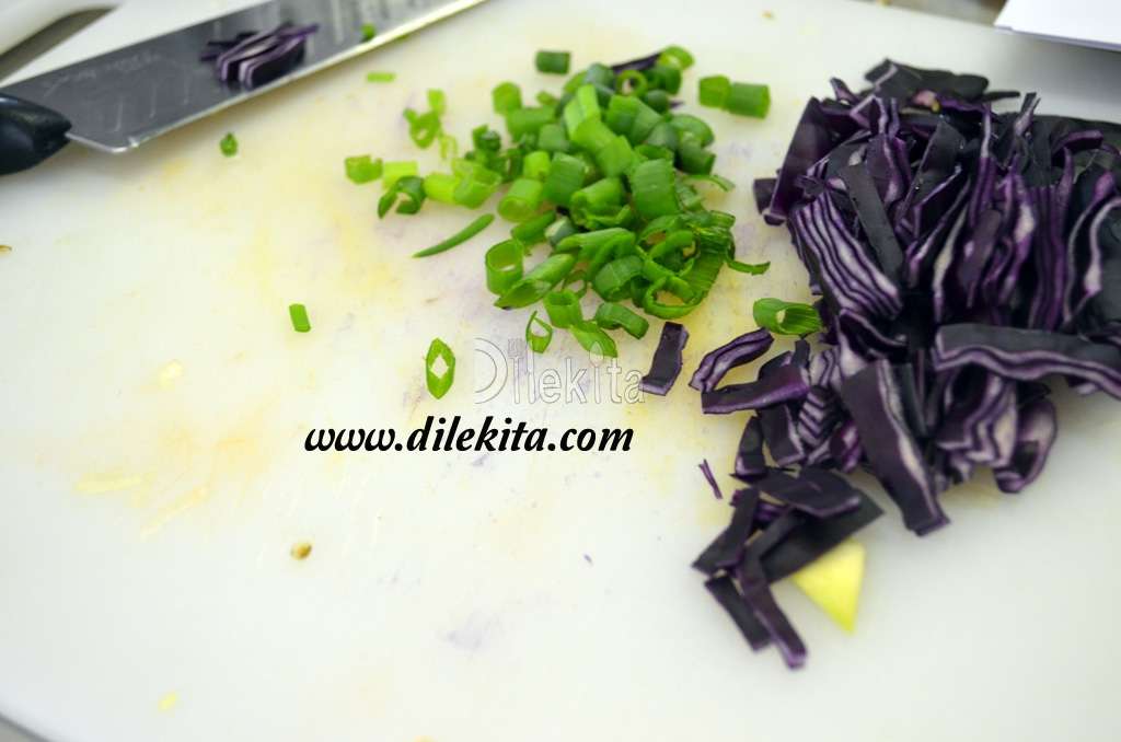 ♥ Mor lahana ve soğan ufak ufak doğranır,