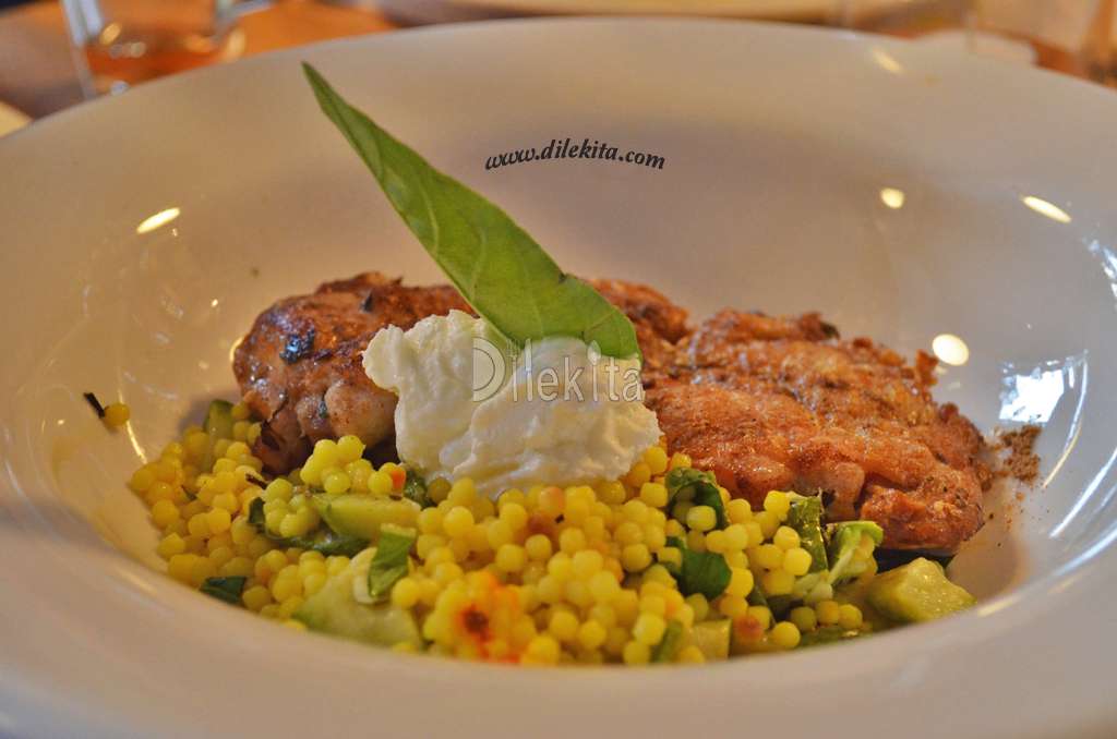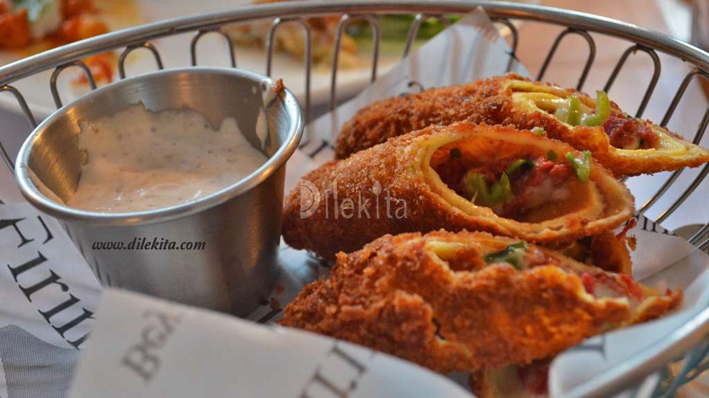 BAŞLANGIÇLAR'dan ALOO TIKKI (13 TL), Ceviz Krokanlı Yoğurtlu Patlıcan (13 TL) ve Sucuklu Çıtır Krep (13 TL) yemeklerini tattım. Yoğurtlu Patlıcan klasik bir Türk yemeği. Fırınlanmış patlıcanlar üzerine yoğurt konmuş ve ceviz krokan & çörek otu serpilmiş. Yanında dereotlu semizotu salatası var. Patlıcanı sevmeyen kimseyi tanımıyorum. Hele hele küçükken annemin yaptığı yoğurtlu ızgara patlıcana gözü kapalı yumulurdum. Beyaz Fırın'ın da yoğurtlu patlıcanı o tadı verdi bana. Ama benim gözüm Aloo Tikki'deydi. İsminden mi, dış görüntüsünden mi bilmem, beni kendine hipnotize etti. Hint usulü patates kroketmiş. Klasik bir tadı olsa da, yedikçe yiyesim geldi. Yalnız, yanındaki chana masala sos adı verilen nohut sosunu hiç sevemedim. Soğuk ve damak zevkime hitap etmeyen bir tadı var. Bana göre değil. En en en sevdiğim ise Sucuklu Çıtır Krep. Kim keşfetmişse, ellerine sağlık. Çok nefis bir lezzet. Sucuk, biber ve mozarella peyniri ile sarılmış krep, kimyonlu peynir sos ile servis ediliyor. Soslu da güzel, sossuz da.