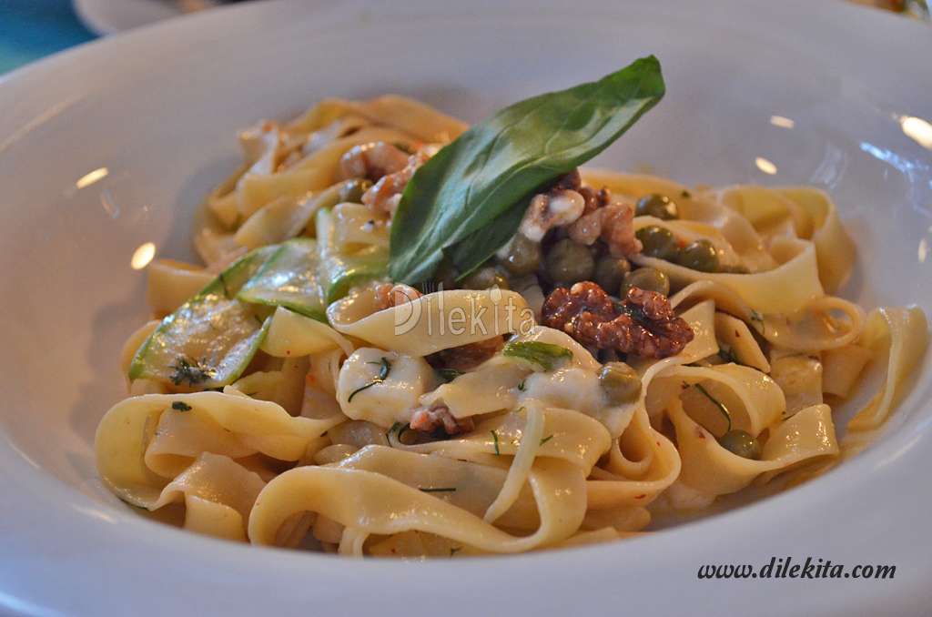 Menüsünde İtalyan mutfağından esintiler olan Beyaz Fırın&Brasserie'de ANA YEMEKLER'den Tulum Peynirli Pizza (24 TL), Summer Fettuccine (23.50 TL), Deniz Börülceli Karidesli Spaghetti (26 TL), Hardal Soslu Izgara Bonfile (43 TL) ve Körpe Tavuk Fırın (28 TL) ortaya tadımlık geldi.
