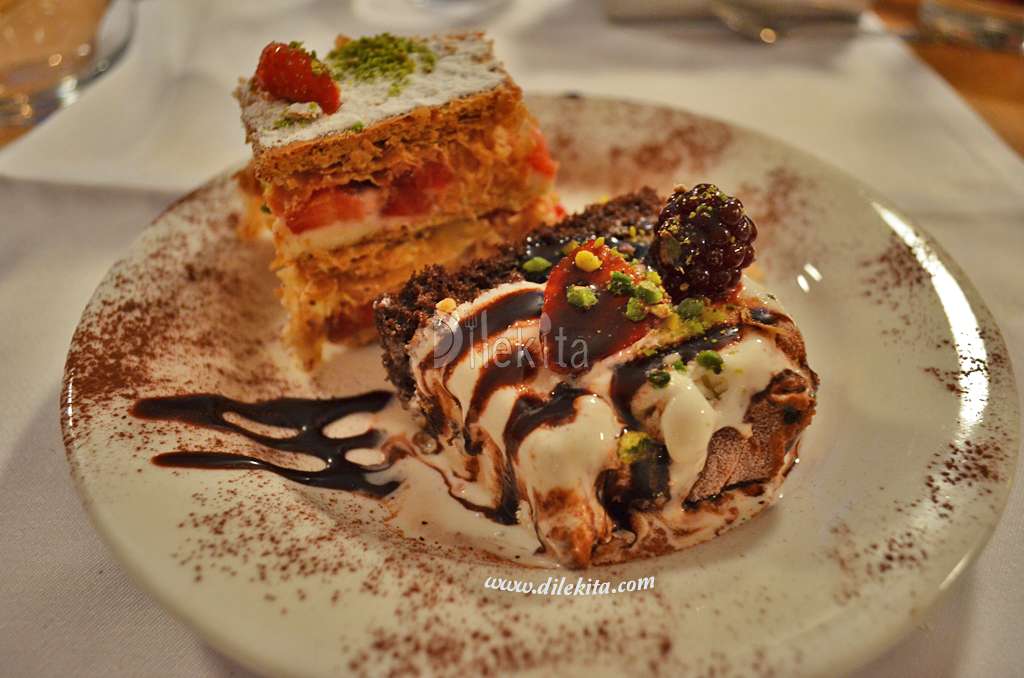 TATLILARA olan zaafım artık dillere destan. Beyaz Fırın zaten yıllardır bu işin ustası. Çilekli Milföy Pasta (9.50 TL) efsane. Başka hiçbir söze gerek yok. Çikolatasız tatlı mı olur diyenler içinse Dondurmalı Tiramisu (13 TL). İkisinden birini tercih et demeyin. Edemem. İkisinin de yeri bende ayrı.